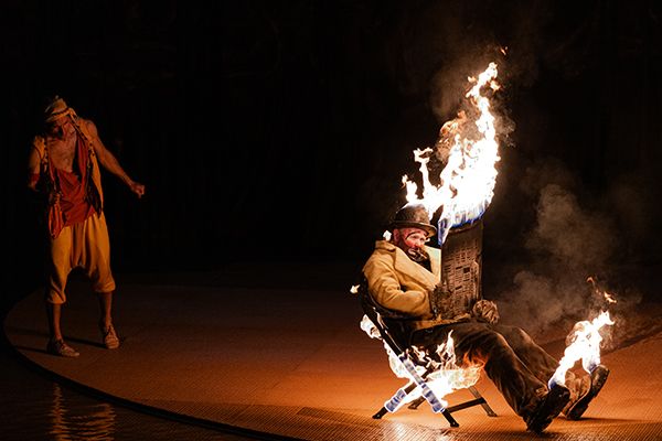 The costume for L'Allumé is made from kevlar. It weighs 41 lbs., and is replaced every 7 to 9 weeks.