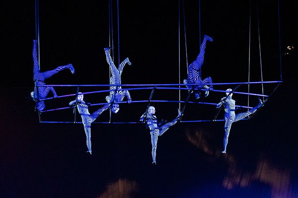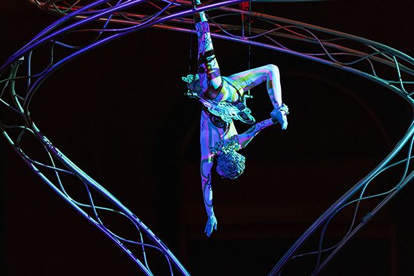 That’s why all acrobatic equipment is made of stainless steel–a first for Cirque du Soleil. The stage itself is made of steel and fiberglass, and covered with rubberized matting to create a water-resistant, non slippery surface for the performers.